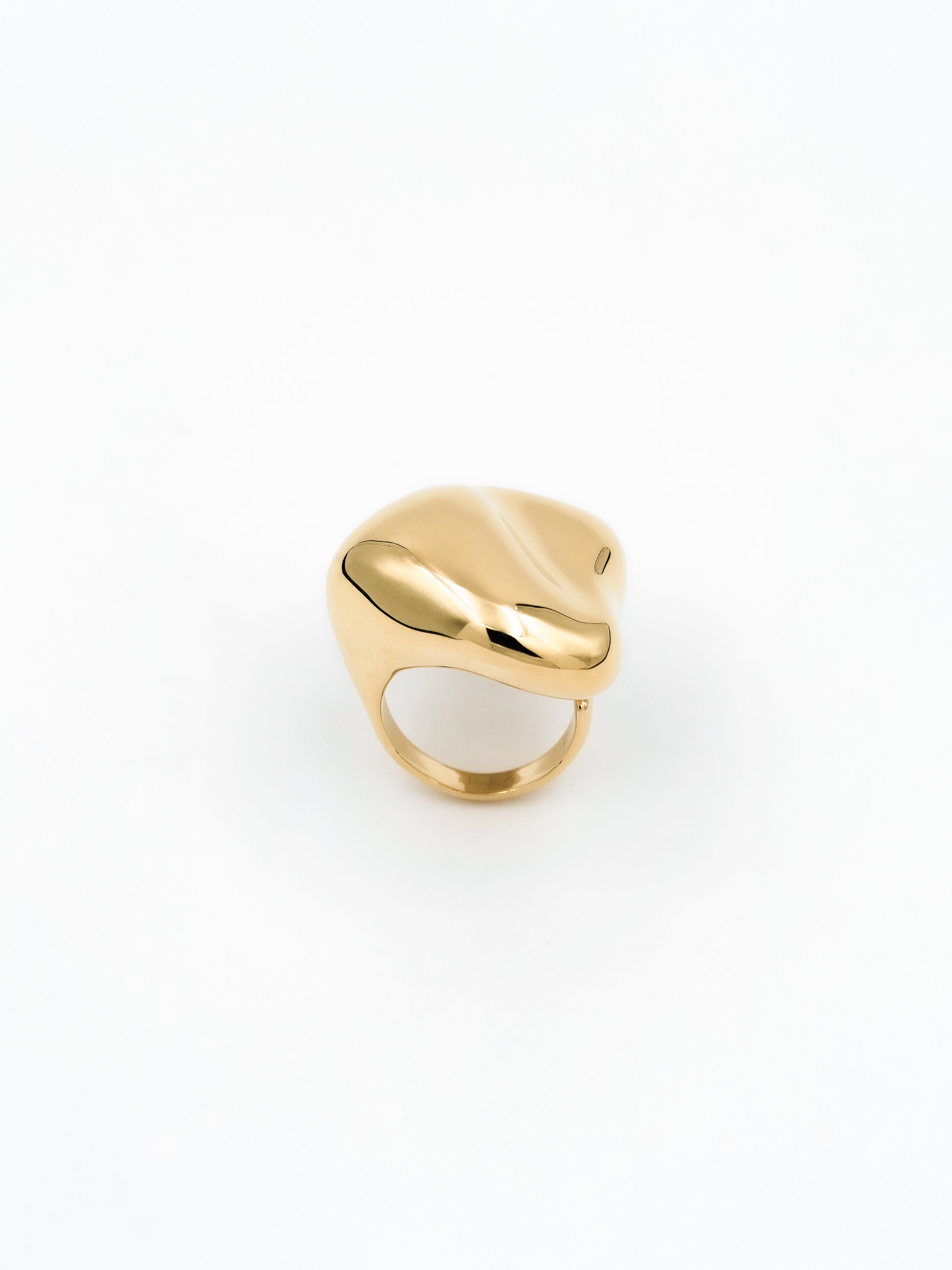 - Кільце виготовлене вручну зі срібла, має скульптурний дизайн у формі серця з позолотою.